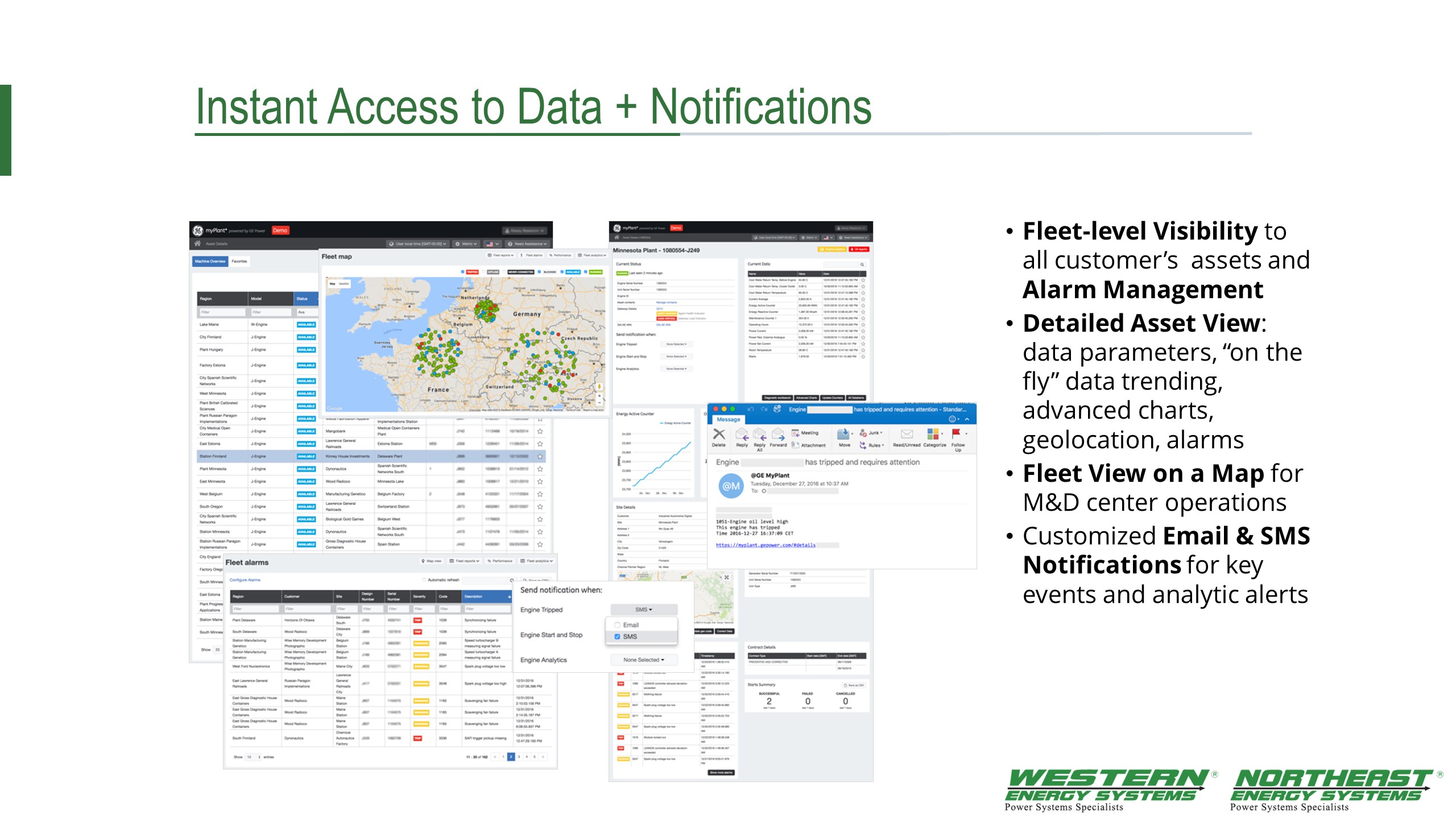 The Asset Performance Management Center is capable of proactively monitoring, reporting, and viewing the analytics of our entire Jenbacher fleet for Northeast-Western Energy Systems USA, LLC.